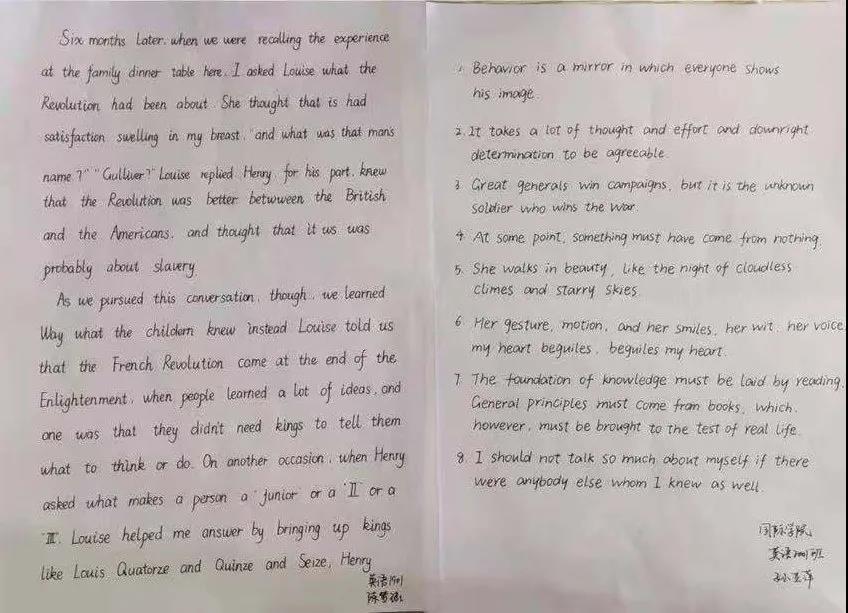 英语书写比赛的开展是国际学院营造良好学风的一项重要活动,同学们在挥洒笔墨中绽放青春光彩。在接下来的学生管理中,国际学院将继续加强优良学风建设、进一步提升学生的综合素质。