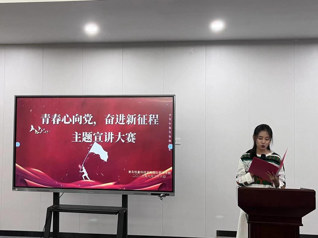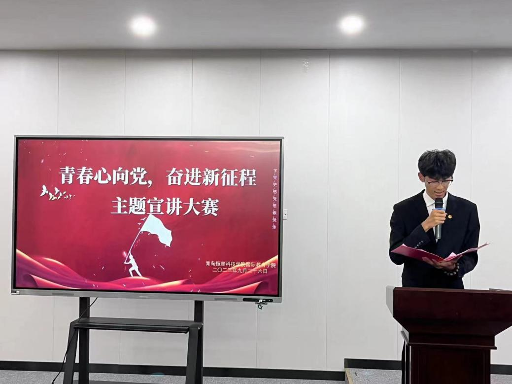 2023年9月26日,青岛恒星国际教育学院举办“青春心向党,奋斗新征程”宣讲比赛活动,深入学习和贯彻习近平总书记重要讲话精神,让青年之辈更好地感受国家发展历程,感受党在当中发挥中流砥柱的作用。