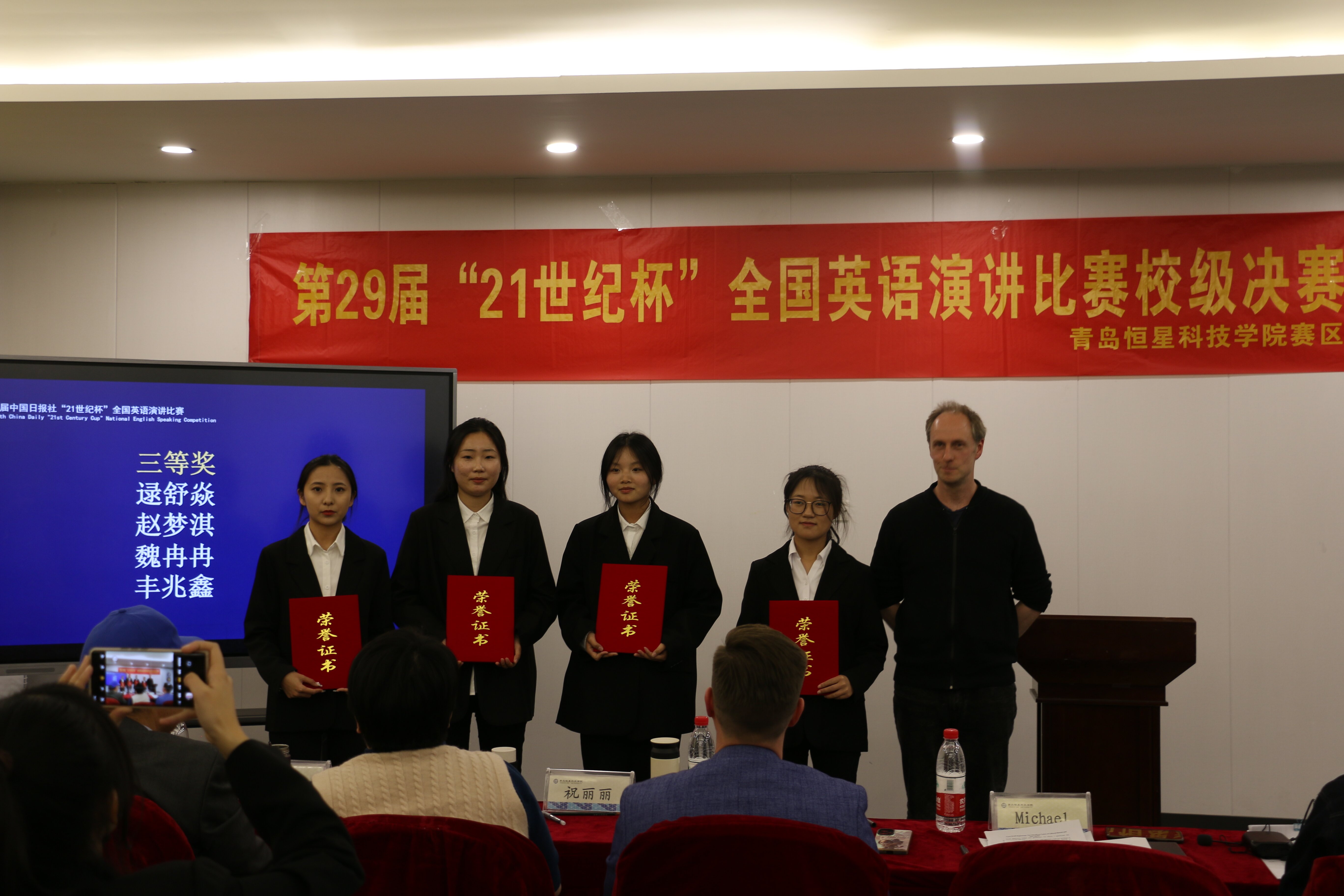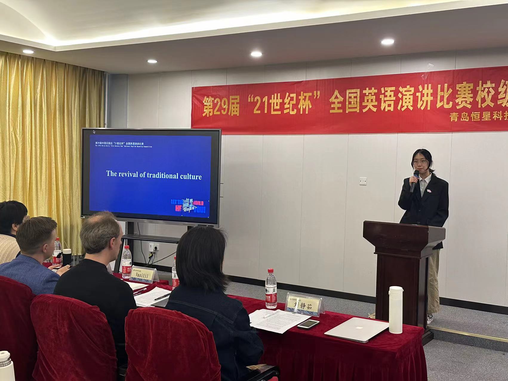 “ 21世纪杯”全国英语演讲比赛旨在提升中国青年讲好中国故事的能力水平,在促进文明交流互鉴、推动构建人类命运共同体凝聚青春力量等方面的成果备受认可。为促进我校英语学科素质教育的发展、营造浓郁的校园英语氛围,并进一步提高我校学生的语言能力,锻炼其思维品质,厚植其文化艺术,展现其青春风采,同时举荐优秀学子参加“21世纪杯”全国英语演讲比赛,特举办第29届“21世纪杯”全国英语演讲比赛青岛恒星科技学院校园赛。