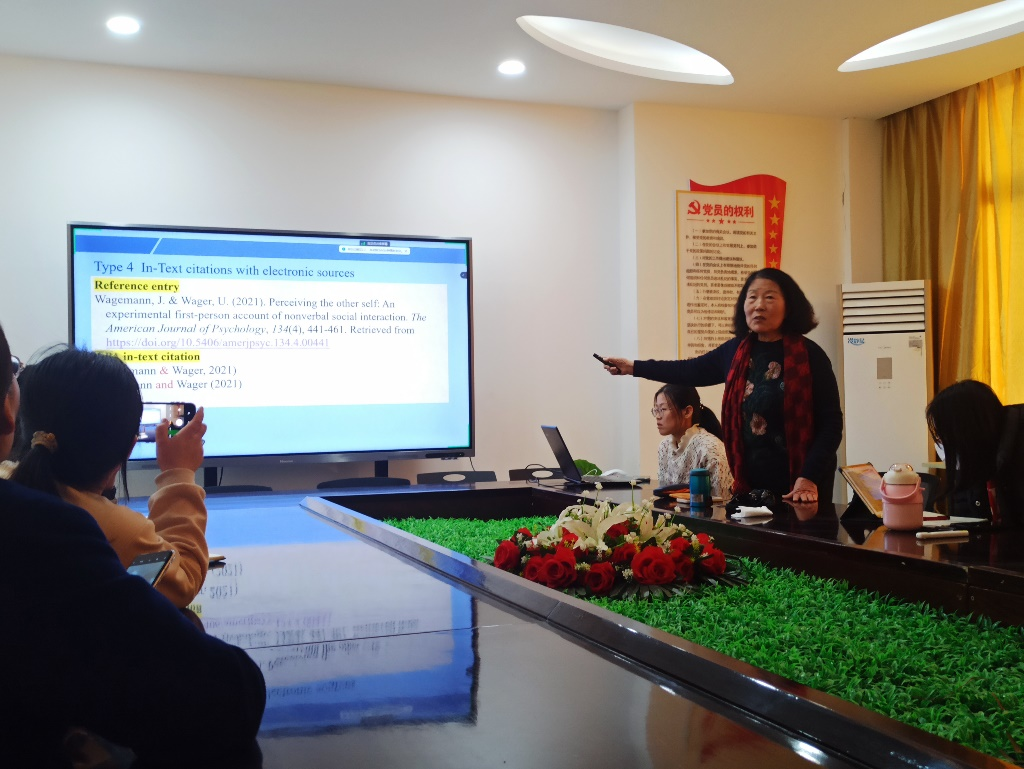 2023年12月12日下午,青岛恒星科技学院国际教育学院郭翠教授在二楼党员活动室开展了一场严谨细致而又馨香如兰的学术论文写作规范与研究方法讲座。
