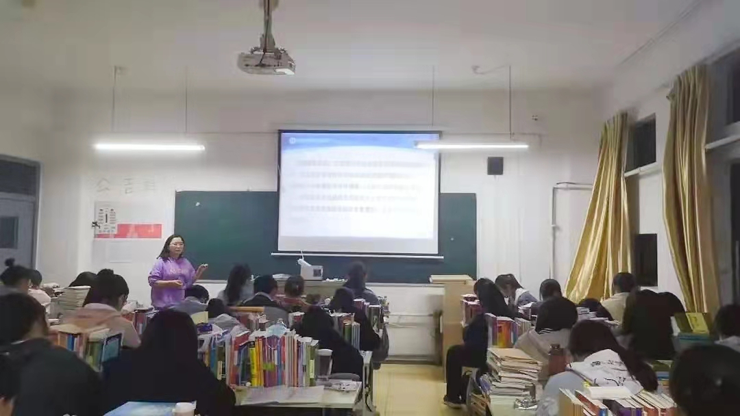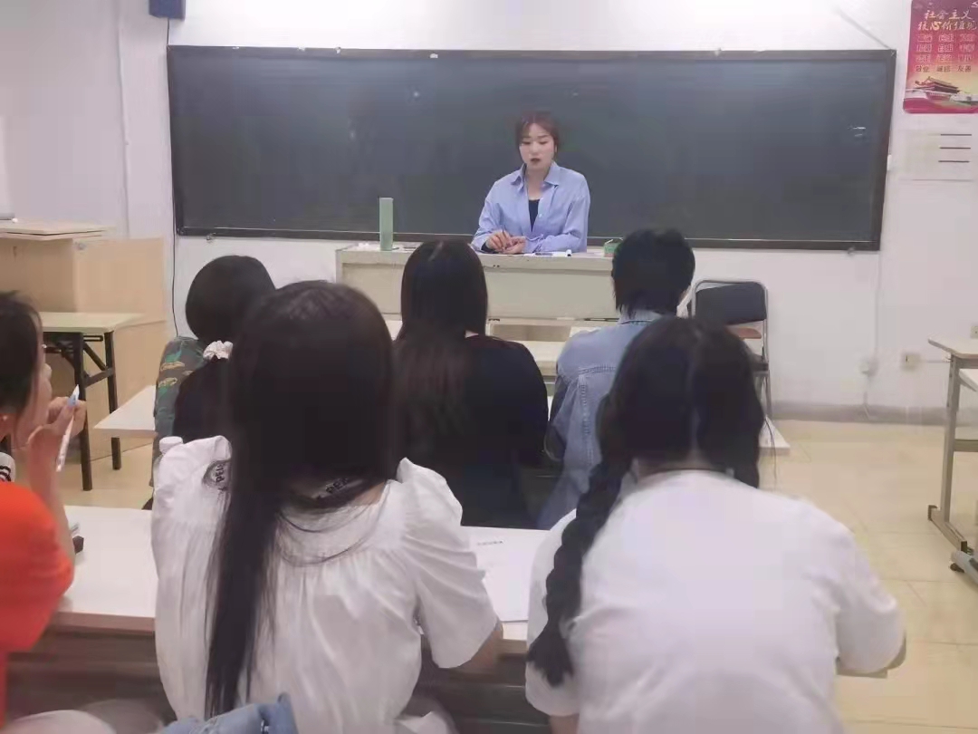 图:辅导员蓝亚男老师为全体团干部传达学院工作方案