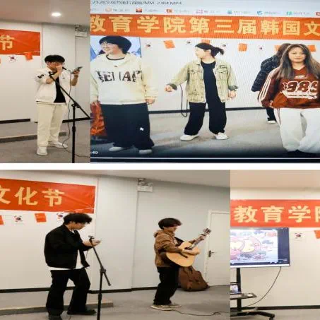 学生们还在现场向大家展示了韩语歌曲、舞蹈、吉他弹凑等表演,博得同学们的阵阵喝彩,把整个活动推向了高潮。