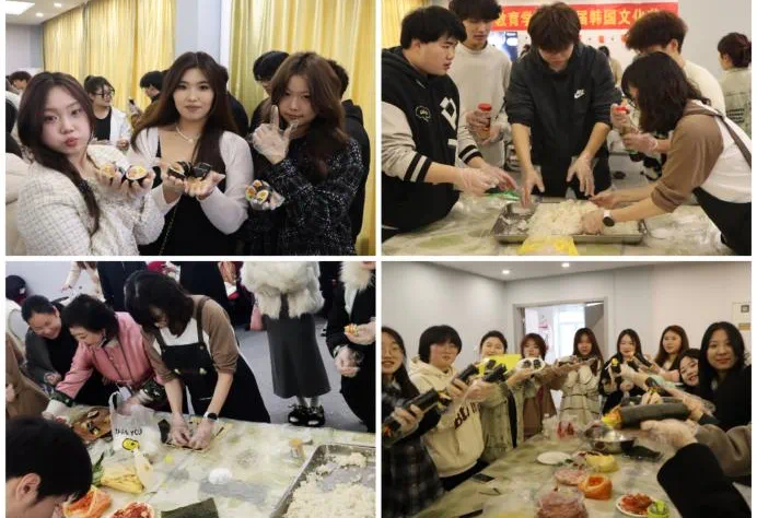 为丰富校园文化生活,搭建中外文化沟通的桥梁,全面推进实践教学改革,也为增强我院应用韩语专业及韩国国际项目学生对韩国特色饮食文化的深入了解,现把实践教学课堂中的韩国饮食文化-紫菜包饭和炒年糕的制作过程知识进行现场体验,增加学习趣味性,进一步提高韩语学习的积极性。国际教育学院于3月28日和3月29日上午12点在A1二楼报告厅隆重举行了第三届韩国文化节活动。