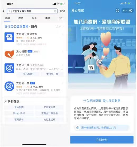 第二步:报名。打开手机端支付宝,搜索“支付宝公益消费捐”或“消费捐”,自主报名;