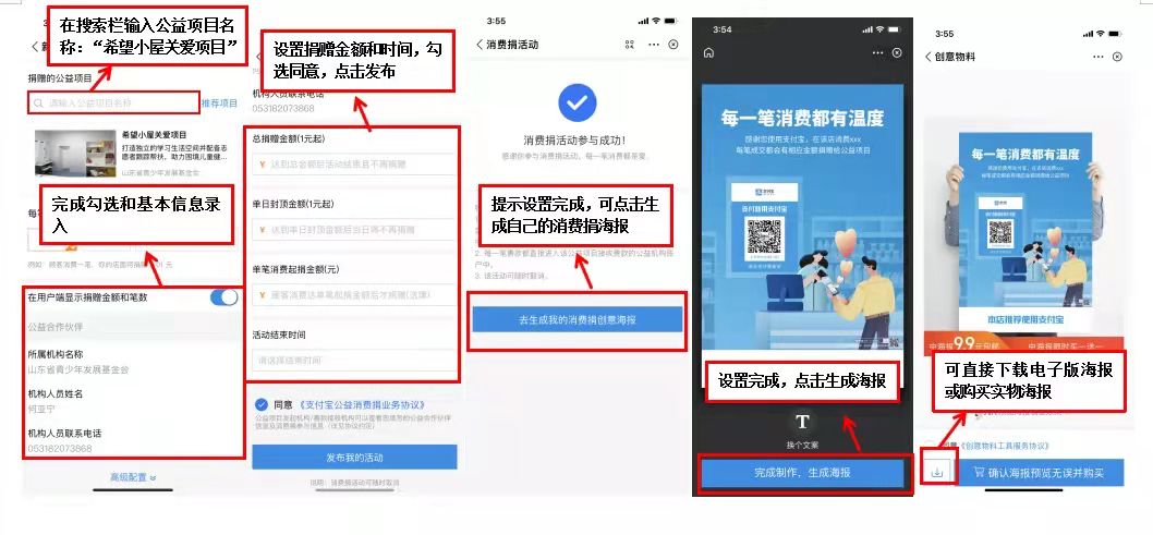 第三步:配置消费捐信息。选择公益项目进行配置,直接填写项目名称捐赠,填写每笔捐赠金额;