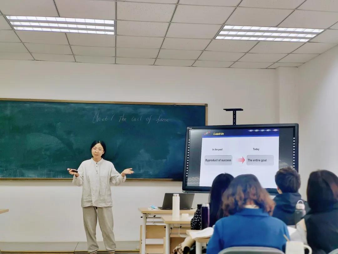 赵倩老师积极调动学生积极性,鼓励学生由浅入深地探讨主题“The Tail of Fame”,通过头脑风暴活动循循善诱,从“by-product of success”到“the entire goal”环节设计紧凑。