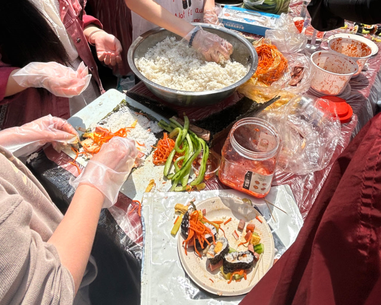 物料分发志愿者根据要求负责发放物料,这不仅是展现恒星学子的志愿精神,更是传递着一份份温暖和祝福。志愿者们在负责老师的组织下,在餐饮中心门口准备好矿泉水、小蛋糕、紫菜包饭等物料,整理摆放、多次确认分工,为这项工作及庆典的进行平添不少亮丽的色彩。