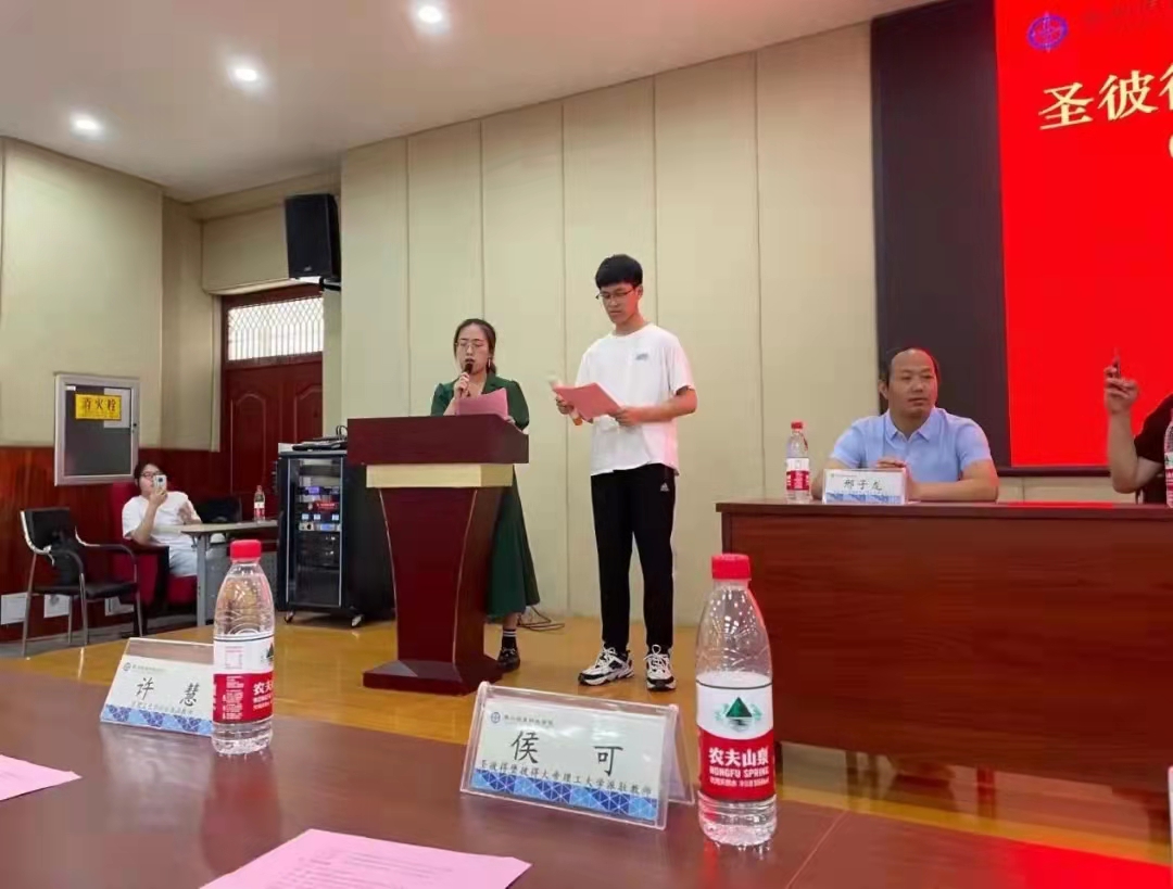 接下来是预科班任课老师代表王永浩对同学们这一学年的学习情况进行了总结并送给同学们三点寄语:第一, 品格、道德的高度决定着人生的高度。第二,大任无怨。第三,独立成长。王思彤同学进行了交替传译。
