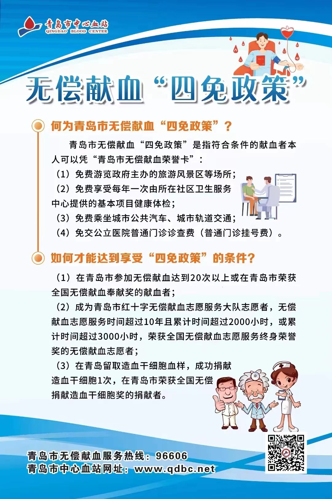 另外,每次献血只会抽取少量的血液,在半年一次的周期下,干细胞完全可以再造,对人体并无伤害,且可以加快代谢,对身体有一定好处。而青岛市政府也推行了对献血志愿者的优惠政策,如此双赢的局面何乐而不为?
