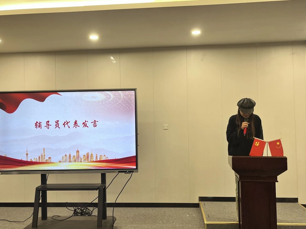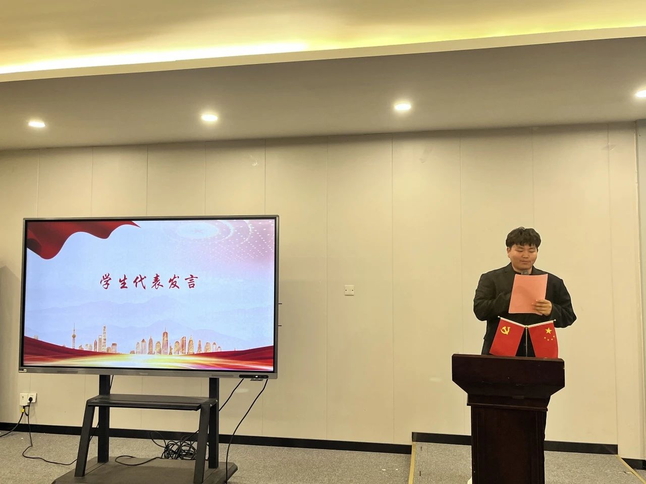 国际教育学院直属党支部书记、执行院长王玉华院长致闭幕词,王院长表示,我们广大青年生逢其时,又重任在肩,前途无比光明,务必珍惜机会,把握未来,勇作走在时代前列的新青年,经受时代的考验,踔厉奋发,砥砺前行。