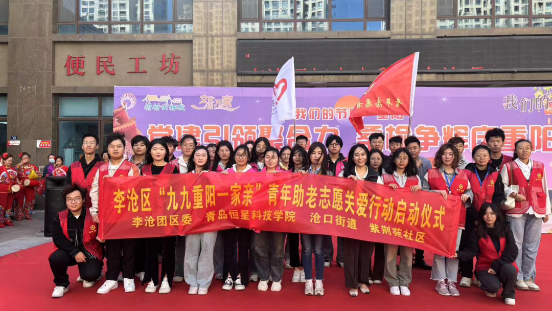 为进一步推进“志愿服务进社区”,关爱老年全体,巩固教育实践活动成果,引导大学生在志愿服务中绽放青春风采,我校于2023年10月20日上午九点,在沧口街道紫荆苑社区,举办李沧区“九九重阳一家亲”青年助老志愿关爱行动启动仪式。