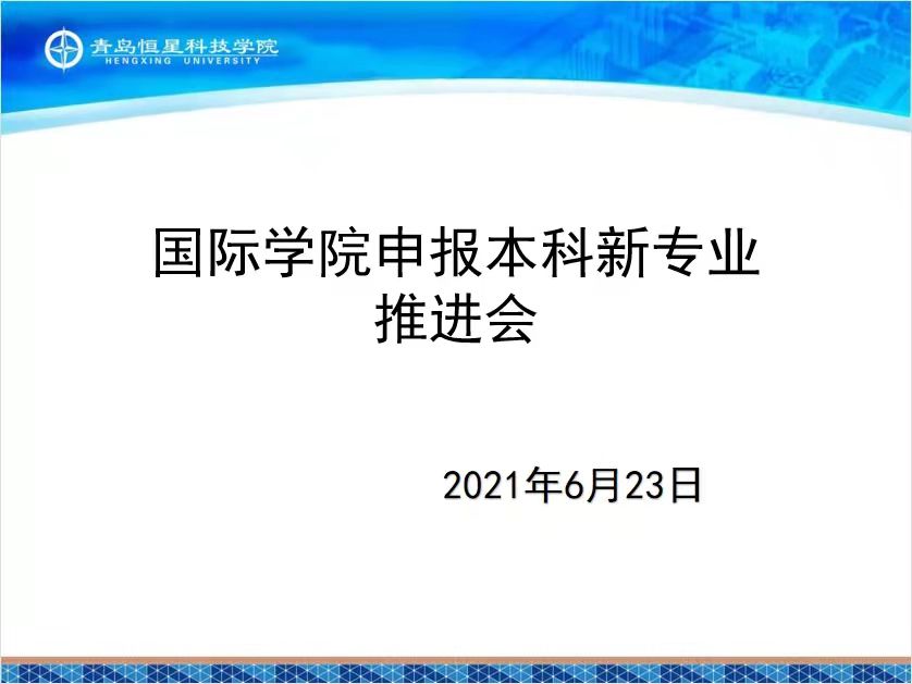 2021年6月23日星期三,国际学院召开申报本科新专业推进会。本次会议由副院长李海峯和武奕老师主持,新专业专家组成员参加本次会议。 会议围绕开展2021年拟新增本科专业申报工作安排展开,包括专业建设论证材料的完善补充计划、拟申报专业的人才培养、师资、硬件设备、专业可行性等问题进行专项研讨。