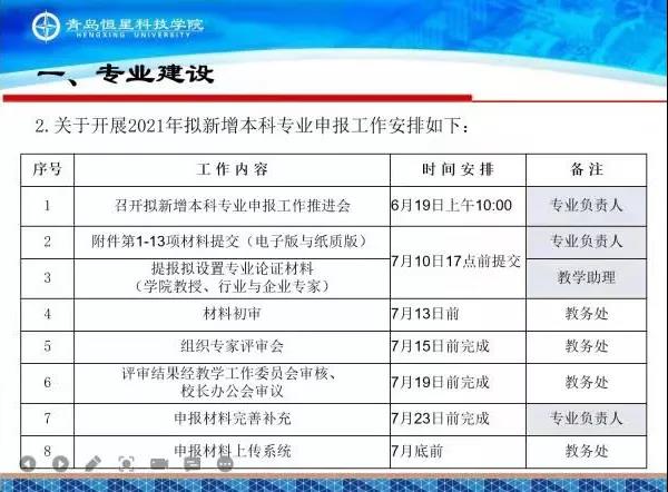 2021年6月23日星期三,国际学院召开申报本科新专业推进会。本次会议由教学院长李海峯和小语种教研室主任武奕主持,新专业专家组成员参加本次会议。 会议围绕开展2021年拟新增本科专业申报工作安排展开,包括专业建设论证材料的完善补充计划、拟申报专业的人才培养、师资、硬件设备、专业可行性等问题进行专项研讨。