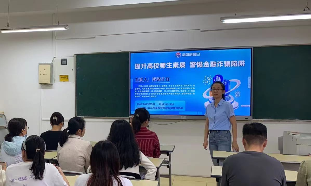 青岛恒星科技学院国际教育学院深入贯彻落实习近平新时代中国特色社会主义思想,积极开展了多种多样的科普活动,本期我们介绍的是公共教研室带给我们的科普内容“提升高校师生素质,警惕金融诈骗陷阱”。