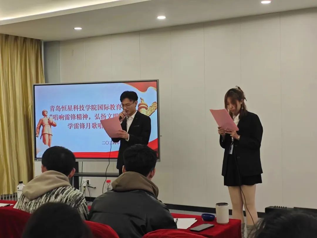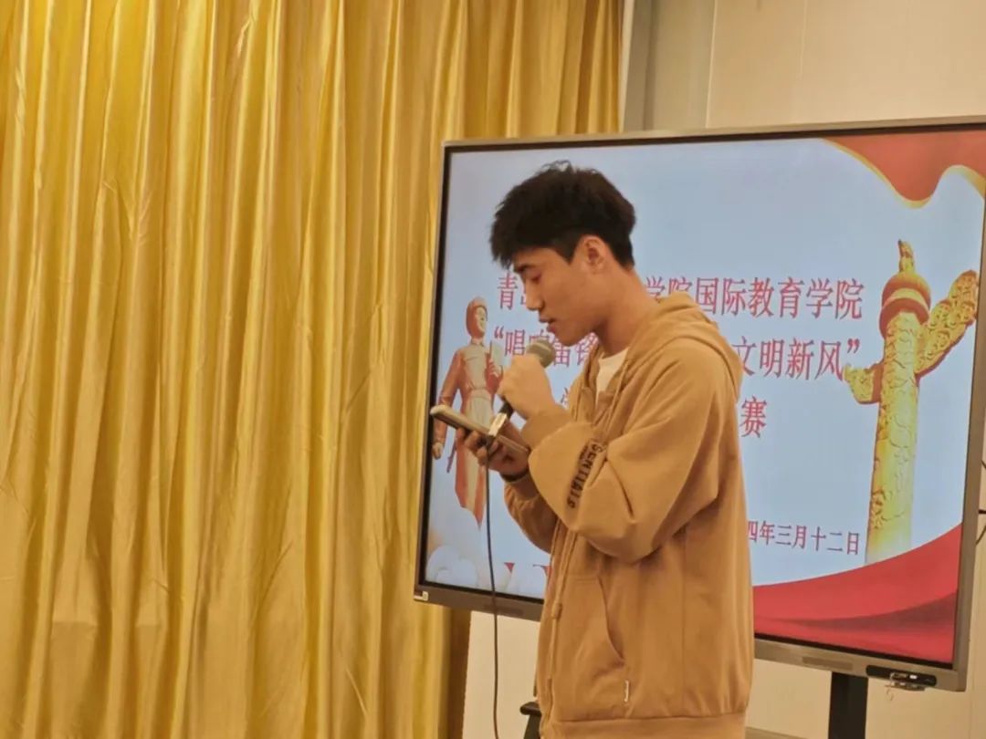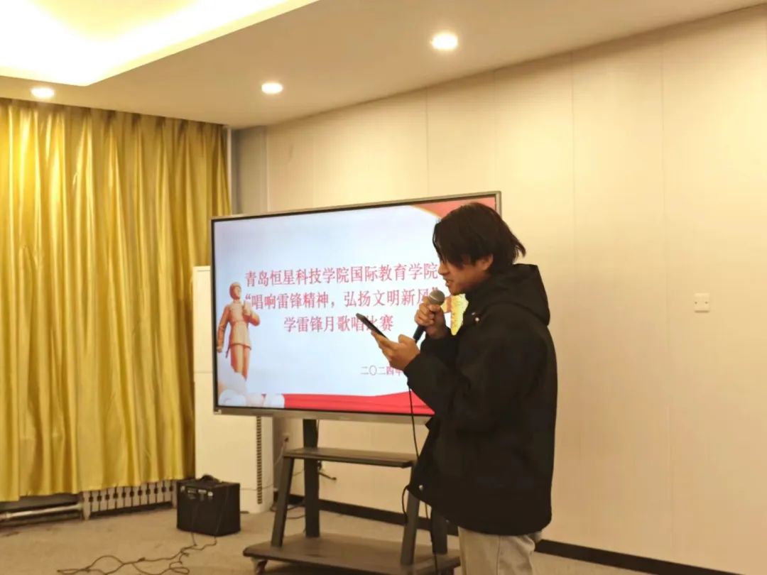 比赛结束后,青岛恒星科技学院国际教育学院党支部副书记李晓民上台发表致辞,李晓民书记对本次活动做了总结,他肯定了同学们的努力与付出,并鼓励大家 “用雷锋精神武装自己,以雷锋之行要求自己。” 他提出:作为一名学生,我们要对学习有恒心、有信心、有毅力,用自己的知识武装头脑,用自己的知识实现人生价值!为成为一名合格的恒星学子而不断努力!