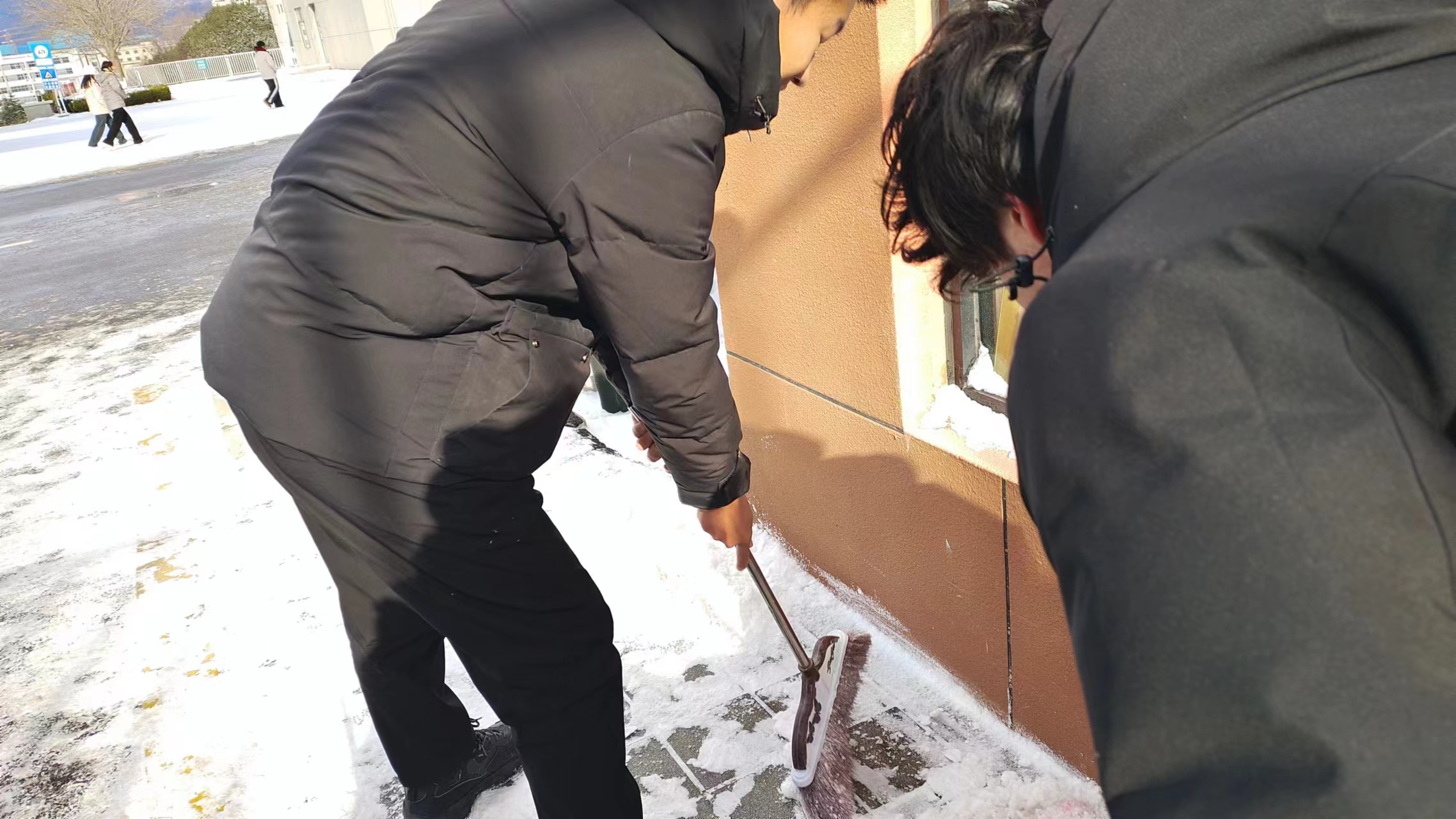 经过大家的辛勤劳动,指定区域的积雪很快就被清除,消除了安全隐患。扫雪的过程虽然辛苦,但他们的行动却让人感到温暖。在同学们的共同努力下,分担区域内的积雪被迅速清扫到位,大家共同努力降低了师生滑倒和意外事故的风险,确保了行人和车辆的安全。国际教育学院的同学们用实际行动向校园贡献出自己的力量。