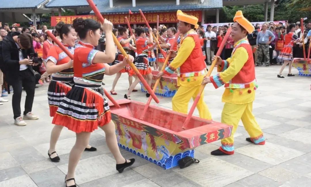 霜降节仪式上,壮族人会献上贡品,唱起民歌,翩翩起舞。