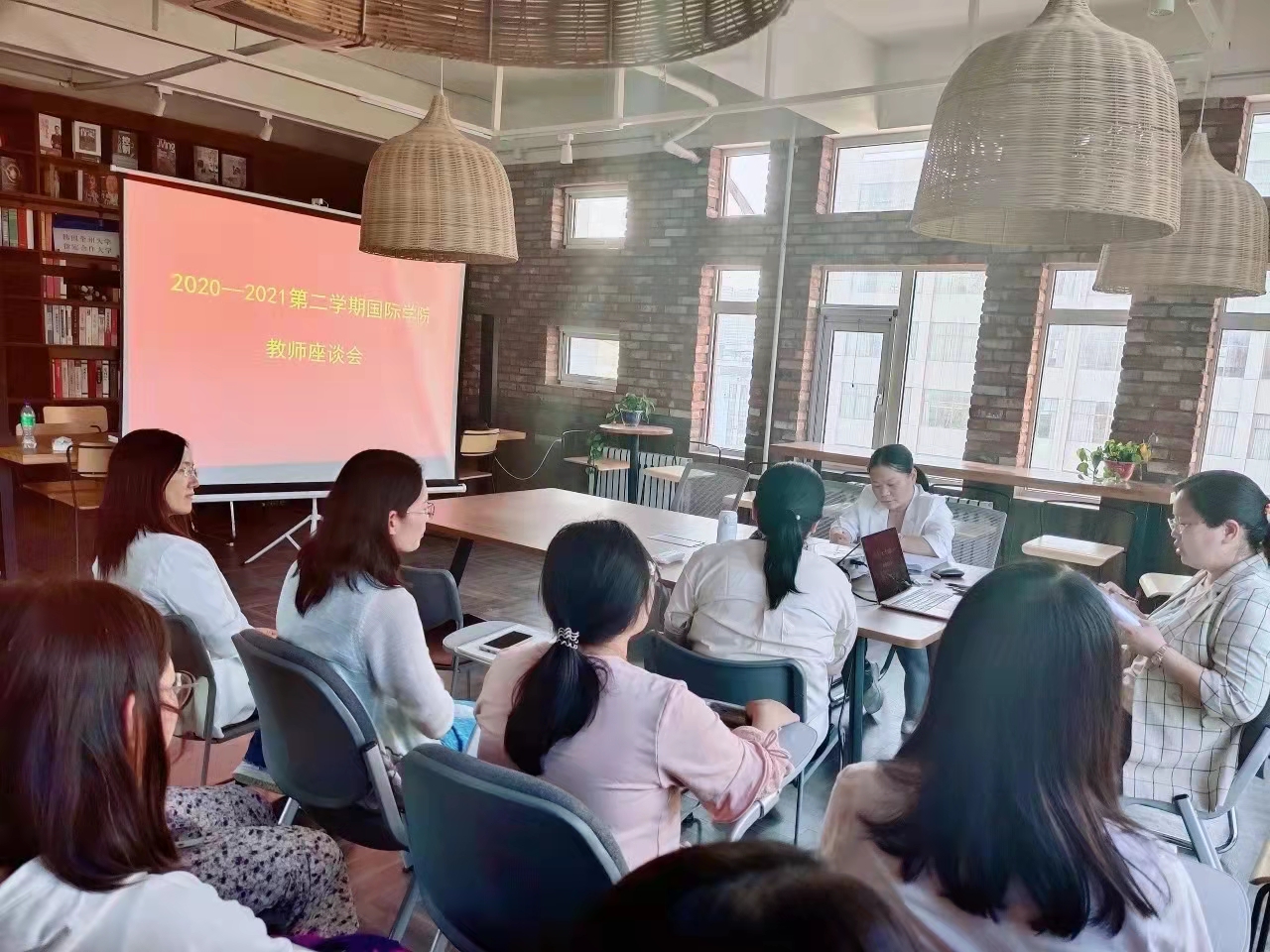 为进一步提高我院教育教学质量、加强教学工作管理以及全面了解我院学生在学习、课外实践和生活中存在的问题,以便及时帮助师生解疑答惑、提高我院师生的满意度和幸福度,根据青恒质函〔2021〕7 号《关于组织2020-2021学年第二学期师生座谈会的通知》,国际学院定于5 月 27 日开展了师生座谈会。座谈会分为学生座谈会和教师座谈会,分别进行。座谈会参会人员包括院领导李汝成教授、学管副院长王玉华副教授、教学助理祝丽丽副教授、校级督导王崇梅副教授、各教研室教师代表、学生管理人员代表和学生代表。