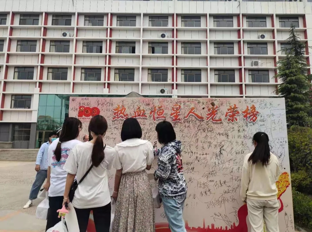 图1:国际学院参加爱心献血的同学在光荣榜上签字